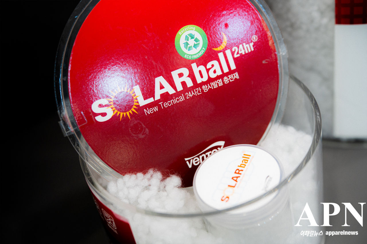 벤텍스의 태광양 발열 충전재 '솔라볼' /사진=최종건 기자