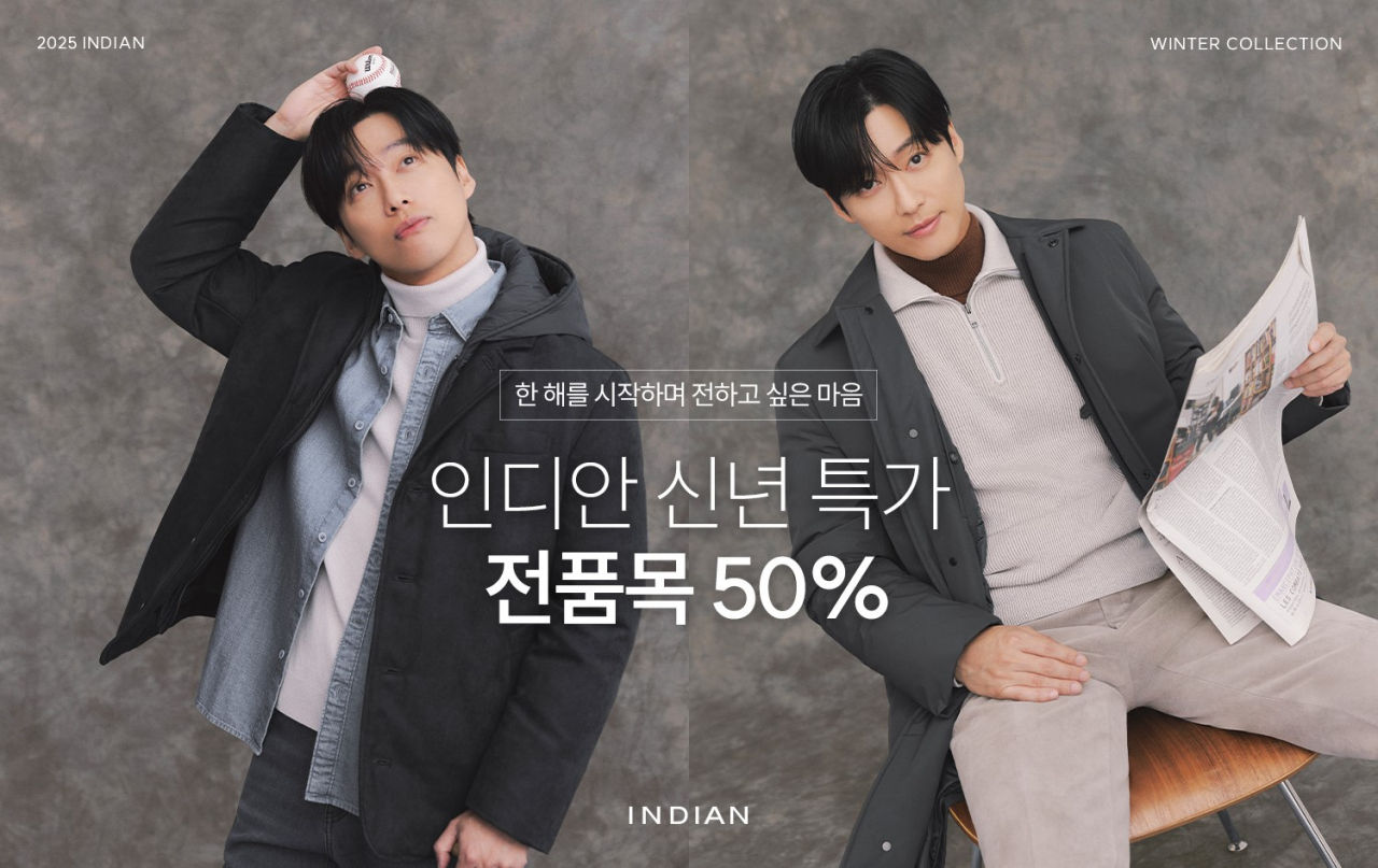 [어패럴뉴스 이종석 기자] 세정그룹(회장 박순호)의 패션 편집숍 ‘웰메이드’의 대표 남성복 브랜드 ‘인디안(INDIAN)’이 선물하기 좋은 아이템을 한자리에 모은 ‘신년 특가 기획전’을 진행한다.