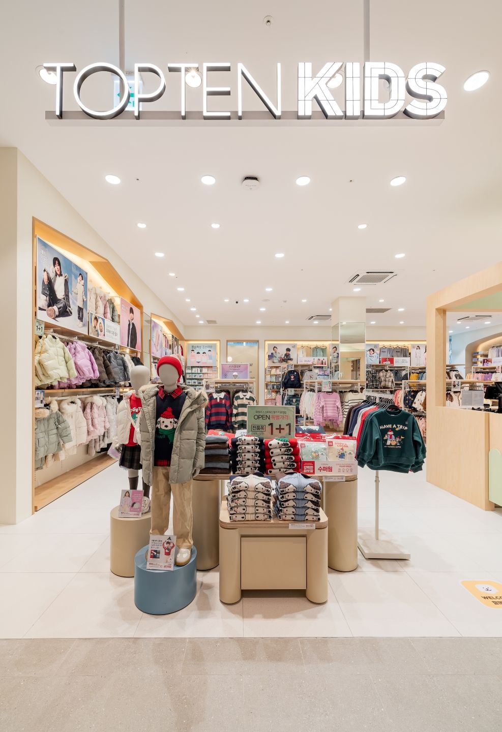 이 같은 성과는 상권 특성과 복합쇼핑몰 환경을 고려한 차별화된 매장 전략이 주효했다는 분석이다. 탑텐키즈는 기존 매장과 달리 카운터를 입구 쪽에 배치해 고객 접근성을 높이고, 매장 내 세 개 면의 벽면을 활용해 상품을 아이템별로 구성했다.