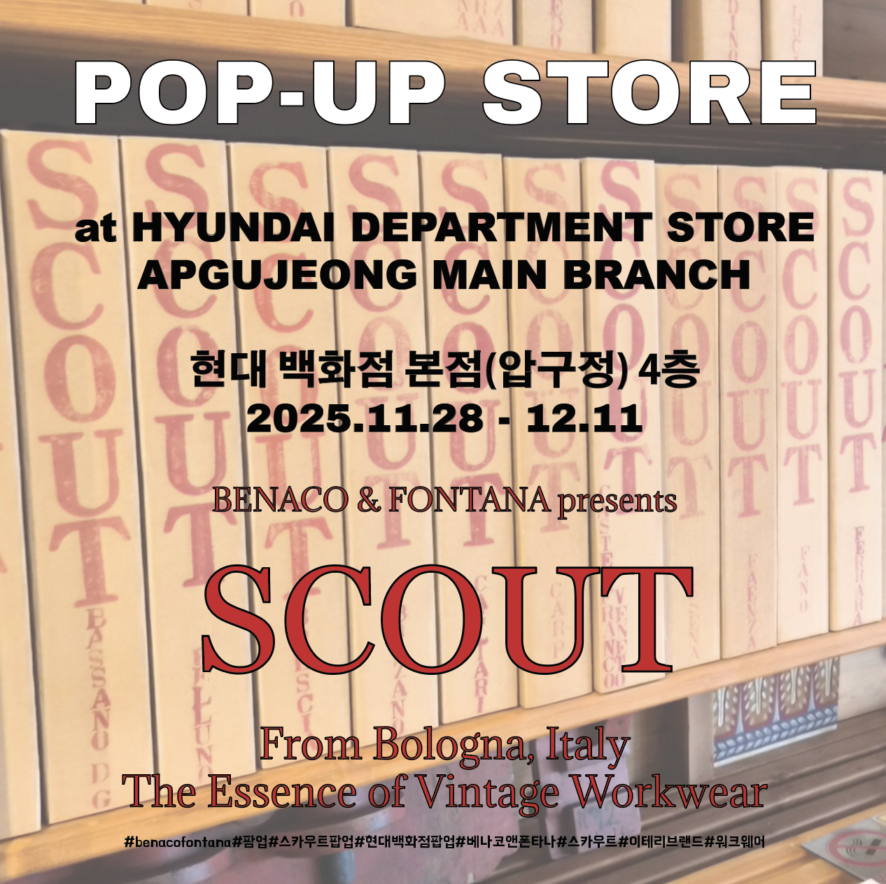 [어패럴뉴스 박해영 기자] 제이제이인터내셔날(대표 조영석)이 이달 이탈리아 빈티지 워크웨어 '스카우트'를 런칭하고, 현대 본점에서 팝업 스토어를 운영한다.