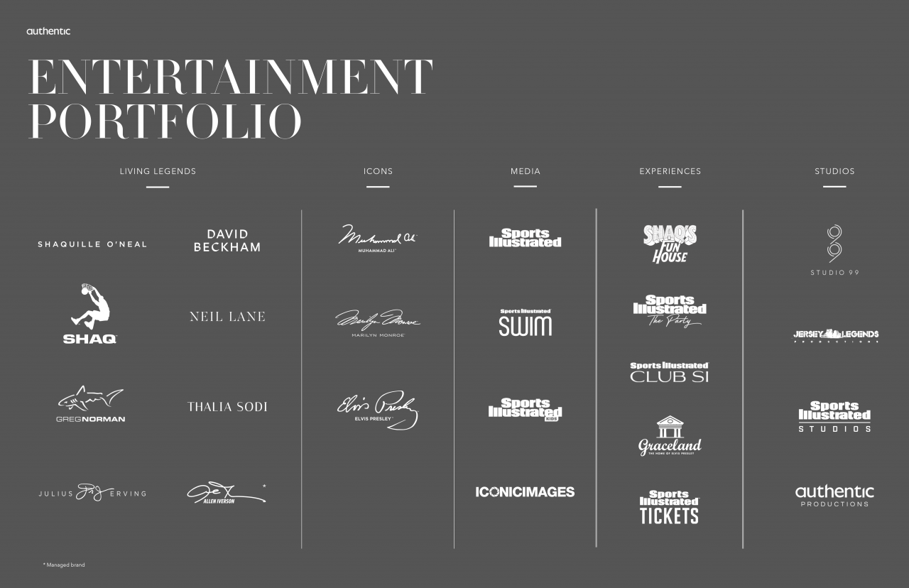 이 회사는 샤킬 오닐(Shaquille O'Neal)의 저지 레전드(Jersey Legends), 데이비드 베컴(David Beckham)의 스튜디오 99(Studio 99), 스포츠일러스트레이티드 스튜디오(Sports Illustrated Studios), 어센틱 프로덕션(Authentic Productions) 등 4개의 크리에이티브 레이블을 구성, 브랜드와 콘텐츠를 개발하고 알리는 역할을 한다.