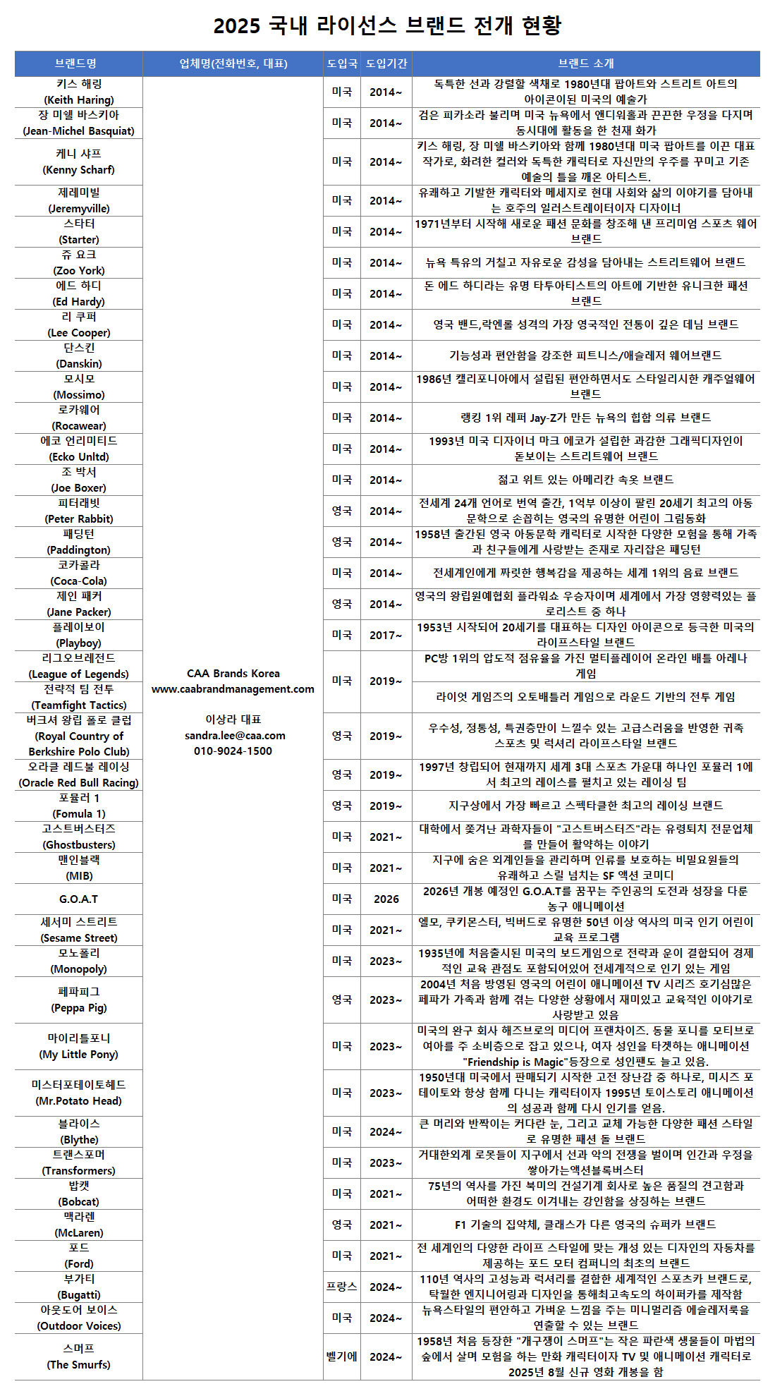 [어패럴뉴스 박해영 기자] 미국 라이선스 전문 기업 CAA브랜드매니지먼트코리아(대표 이상라)가 패션, F&B, 전시 등 다방면에서 세를 확장하고 있다.