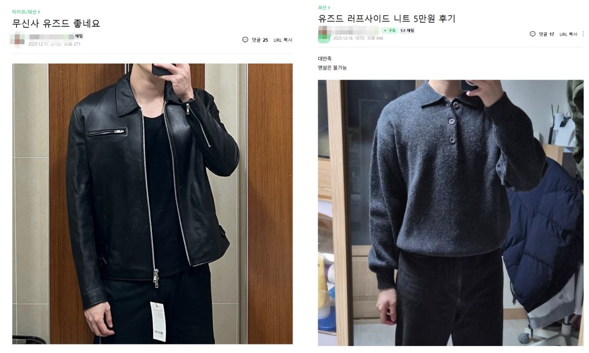 | 온라인 커뮤니티에 게시된 ‘무신사 유즈드’ 이용 후기 |