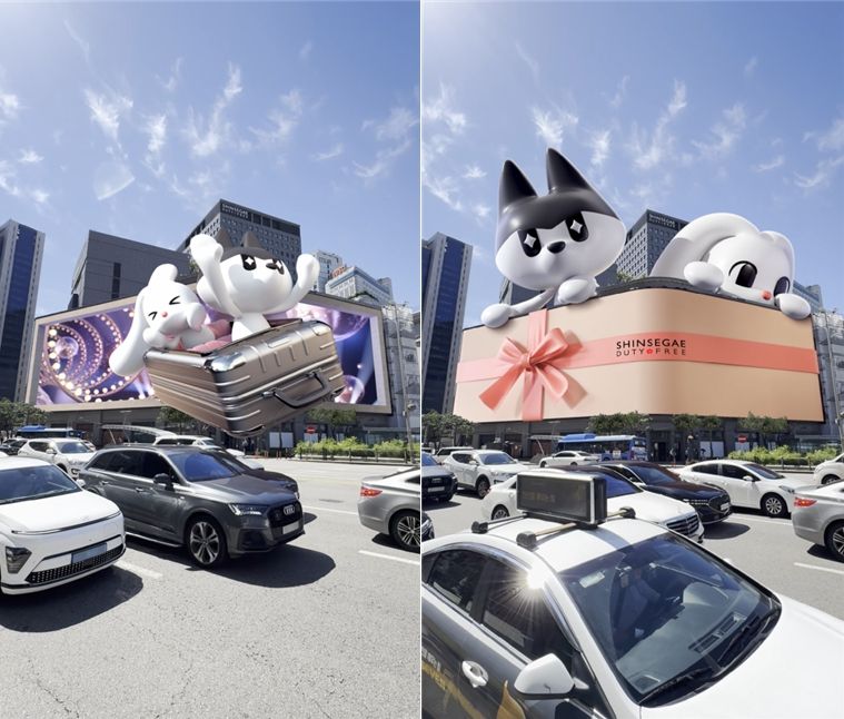 명동점 외벽 초대형 미디어 전광판 신세계스퀘어의 3D 아나몰픽 영상부터 명동 일대 주요 상권으로 확산된 미디어아트형 디지털 옥외광고까지 캠페인 접점을 넓혔다. 동시에 명동점 11층 휴게공간 스카이파크에 캐릭터 조형물·포토존·이벤트 공간까지 연계해 노출을 확대했다.