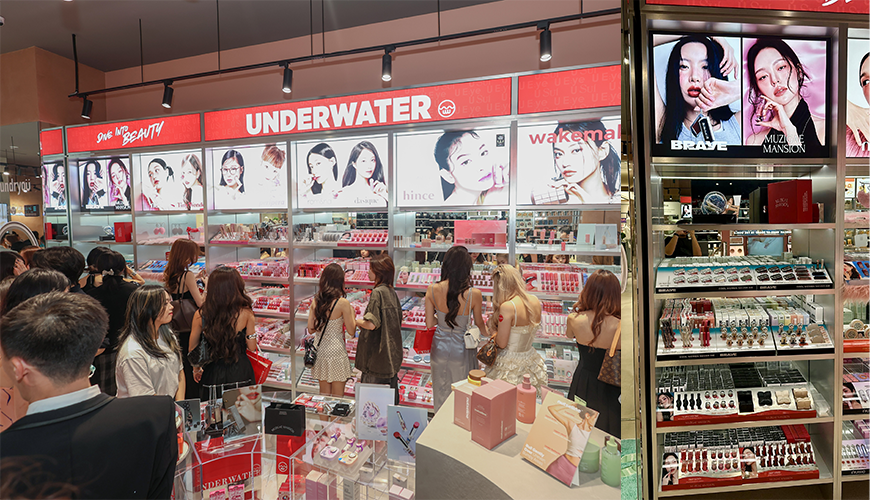 지난 8일 말레이시아의 신규 라이프스타일 복합 공간인 엠파이어 시티(Empire City) 내 엑스타 월드(Extar World)에서 ‘언더워터’ 플래그십 스토어 오픈 행사가 진행됐다. 해당 매장은 ABC가 운영하는 대표 오프라인 채널로, 다양한 K-뷰티 브랜드를 큐레이션해 선보이는 플래그십 공간이다.