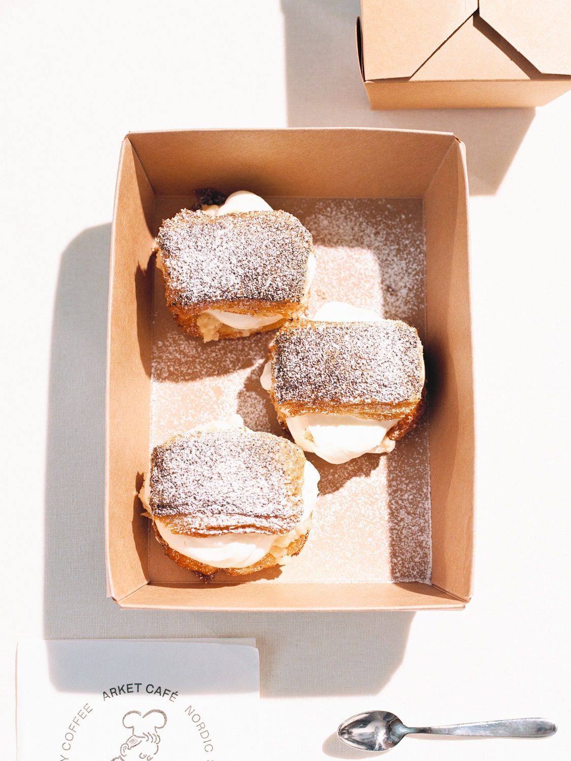 제철 재료를 활용하고 베지테리언 메뉴를 추구하는 아르켓 카페의 헤드 셰프 마틴 버그(Martin Berg)는 덴마크 전통 페이스트리인 ‘테비아커스(Tebirkes)’에 치아시드를 얹고 작은 크기로 담아내어 기존의 셈라를 새롭게 재해석하였다. 아몬드 페이스트와 부드러운 휘핑크림이 조화를 이루며 견과류의 고소함과 달콤한 크림이 만나 입안 가득 만족감을 선사한다.