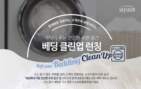 태평양물산(대표 임석원)이 침구 브랜드 ‘소프라움’ 침장 전문 세탁 서비스 ‘베딩 클린업’을 선보였다.
