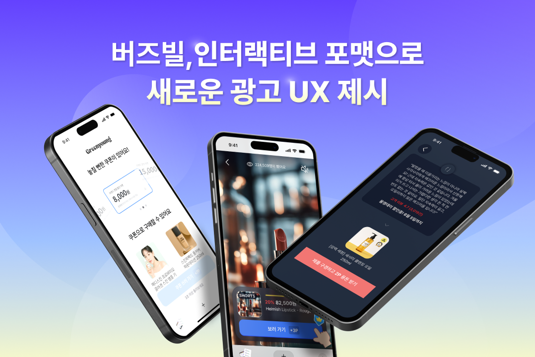 버즈빌은 리워드 기반 참여형 광고 모델을 시장에 정착시키며 사용자 참여형·보상형 광고 생태계를 선도해왔다. 이번에 강화한 인터랙티브 광고 포맷은 ‘보는 광고’에서 ‘경험하는 광고’로의 전환을 통해 사용자 체류 시간을 자연스럽게 늘리고, 광고 거부감을 낮춰 브랜드 몰입도를 극대화한다.