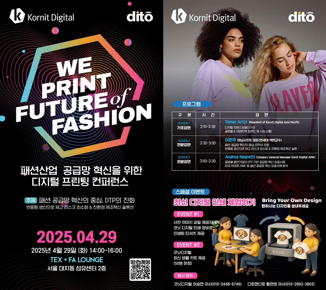 현장에서는 최신 디지털프린팅 장비로 인쇄한 다양한 패션 아이템을 직접 확인할 수 있다. 이번 행사는 사전 신청자에 한해 참석이 가능하고, 50명 한정으로 진행된다.