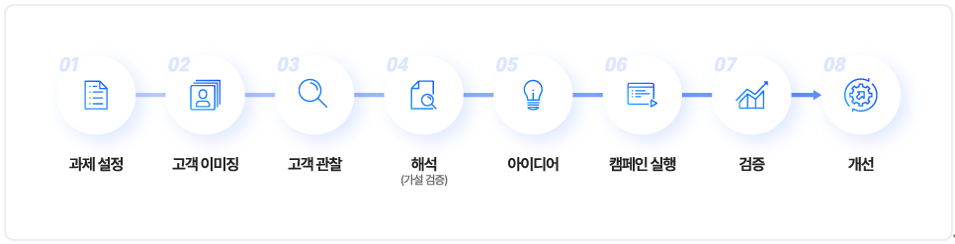 이러한 반복 과정을 매우 귀찮거나 지루한 것으로 여길 수도 있지만, 고객 데이터 분석에 근거한 마케팅을 성공적으로 수행하는 데 있어서 다시 앞 단계의 가설로 돌아가거나, 고객 관찰에서 놓친 부분이 없는지 등을 검토하는 반복은 필수적이다. 이는 단순히 시행착오가 아닌 데이터에 기반한 마케팅 경험과 역량이 축적되어 궁극적으로는 사업 경쟁력을 높이는 데에 큰 도움이 될 수 있다는 것을 인식해야 한다.