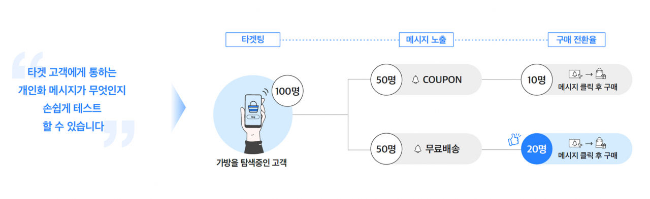 | 온사이트 개인화 메시지의 AB 테스트 사례 |