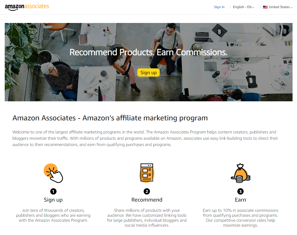 개인 웹사이트 운영자들이나 파워 블로거들에게 아마존 쇼핑몰에 올려진 제품을 홍보하도록 하고, 이들의 사이트나 블로그에 올려진 링크를 통해 아마존의 제품이 판매된 경우 해당 웹사이트 운영자나 블로거에게 일정한 커미션을 제공하는 방식이다.