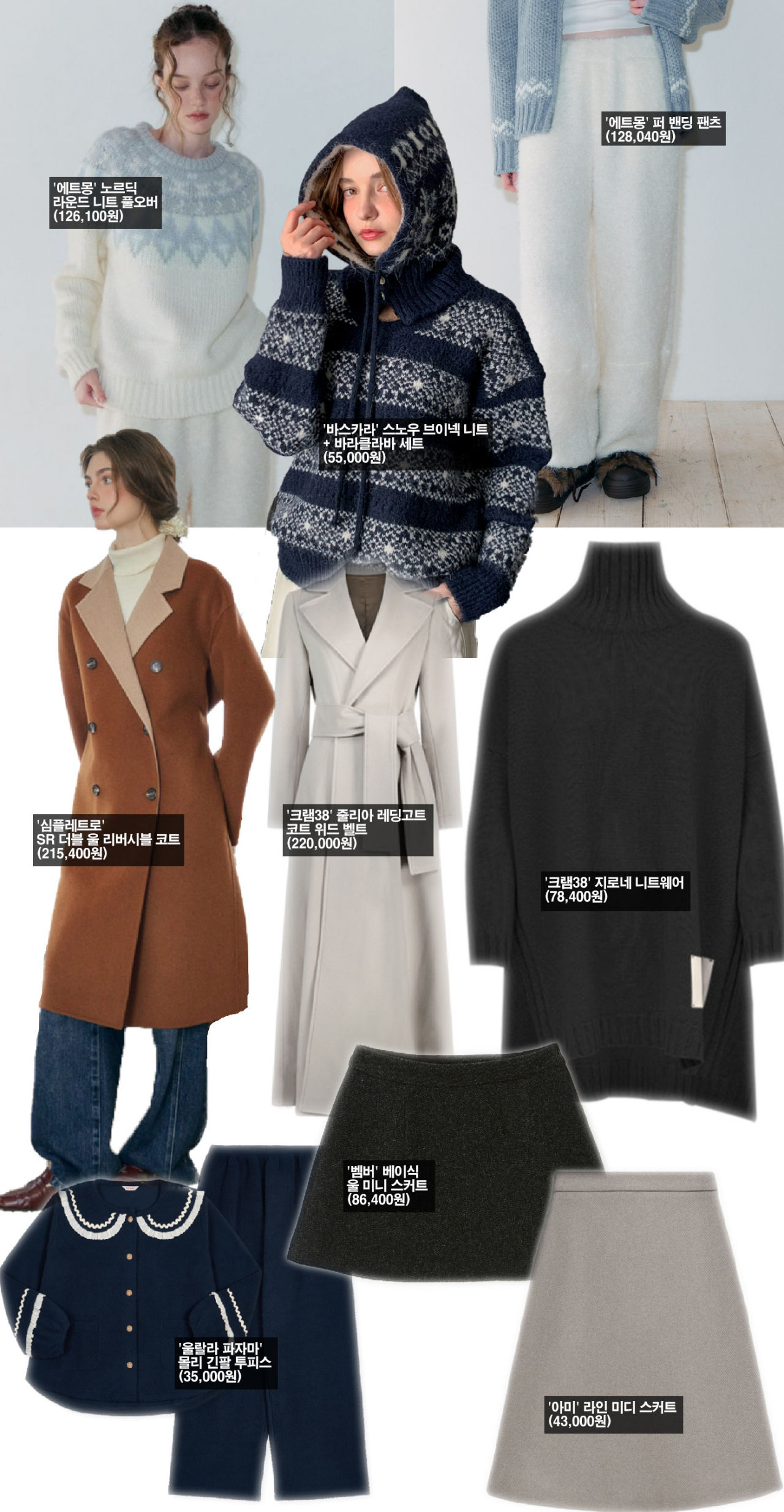 의류 카테고리의 경우도 겨울 아우터가 아닌 단품을 중심으로 랭킹이 형성되어 있다. 니트 풀오버와 집업 카디건, 블라우스 등 상의 단품이 가장 판매량이 많았고, 잠옷 세트와 스커트 일부도 랭킹에 포함됐다.
