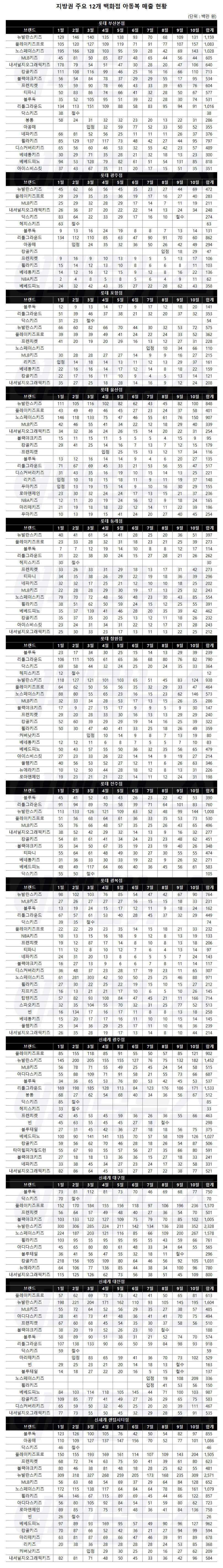 브랜드 쏠림 현상은 지방권 점포에서 더 강하게 나타났다. 뉴발란스키즈, 플레이키즈프로, 노스페이스 키즈, 리틀그라운드 등 상위 브랜드로 매출이 집중됐다. ‘뉴발란스키즈’가 압도적이다. ‘뉴발란스키즈’는 지난 10월 백화점 매출이 나머지 브랜드와 비교해 최소 15억 원 이상 높게 집계됐다.