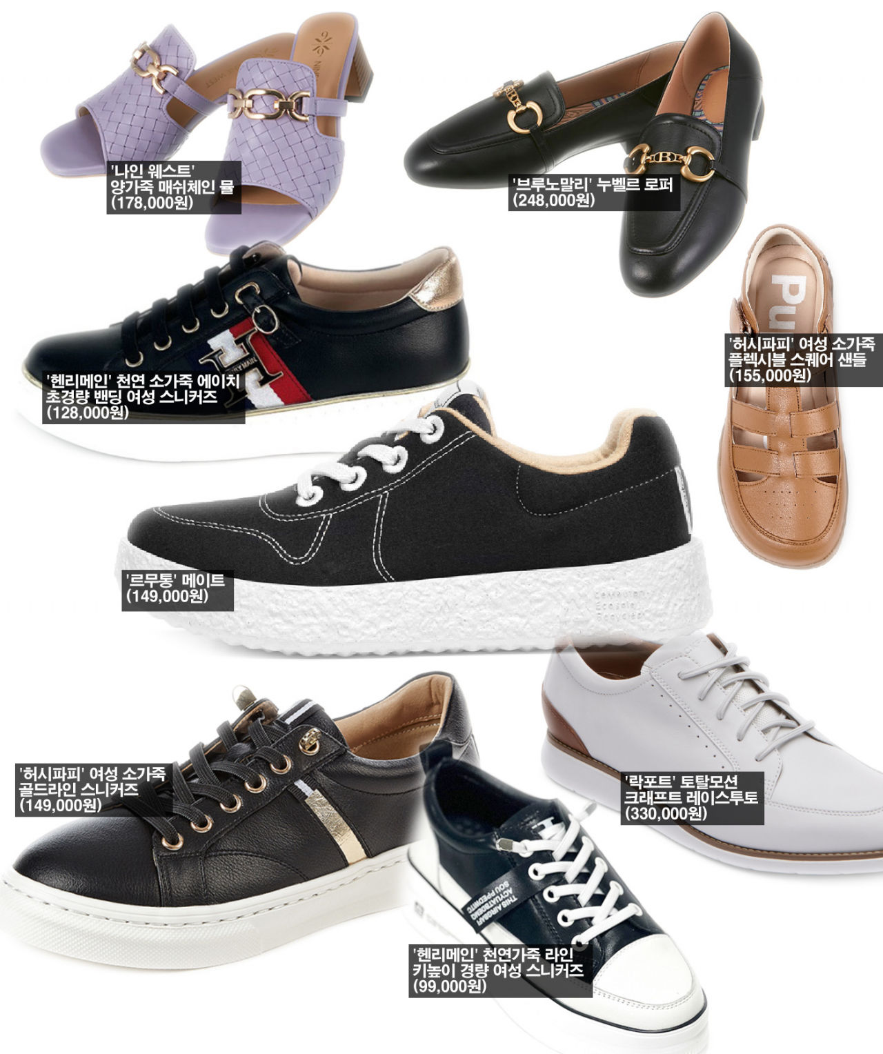 신발 카테고리는 옷에 비해 계절감이 빠르게 반영된 모습이다. 샌들과 젤리슈즈 등의 인기가 저물고 스니커즈를 중심으로 판매가 진행되고 있다. 연령대가 높은 만큼 키 높이 기능이 있는 스니커즈가 상위권을 차지하고 있는데, ‘허시파피’와 ‘르무통’, ‘락포트’ 등 편안한 착화감의 제품이 인기가 높다. 가을 신발을 대표하는 로퍼는 아주 일부 제품만이 랭킹에 올라 있고, 부츠도 아직 반응이 없다.