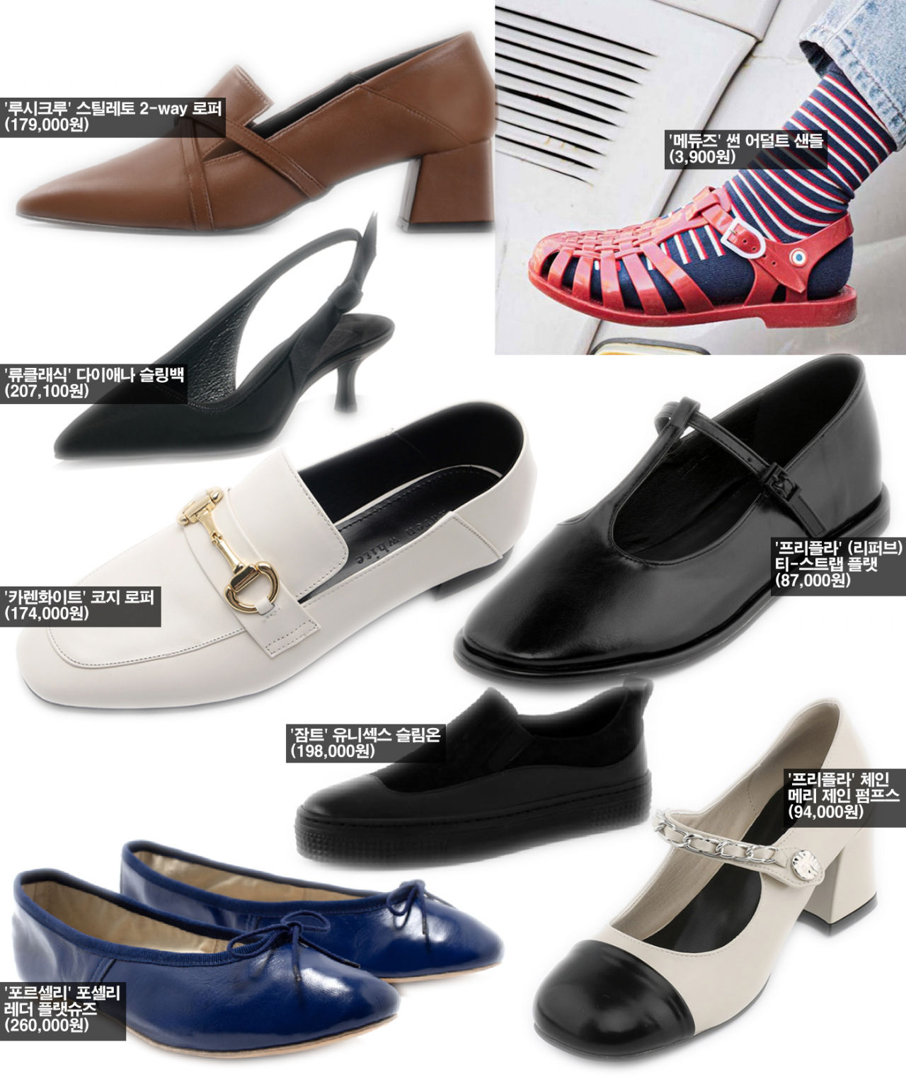 신발에서는 계절감이 훨씬 빠르게 느껴진다. 로퍼와 슬립온, 플랫 슈즈 등 굽이 낮고 발이 편하면서도 너무 캐주얼하지 않은 제품들이 인기가 많다. 스니커즈 판매량은 크게 줄었고, 부츠 판매는 아직 시작되지 않아 랭킹에 오른 제품이 없다. 올 가을 유행으로 떠오른 스웨이드 제품도 딱히 눈에 띄지 않는다.