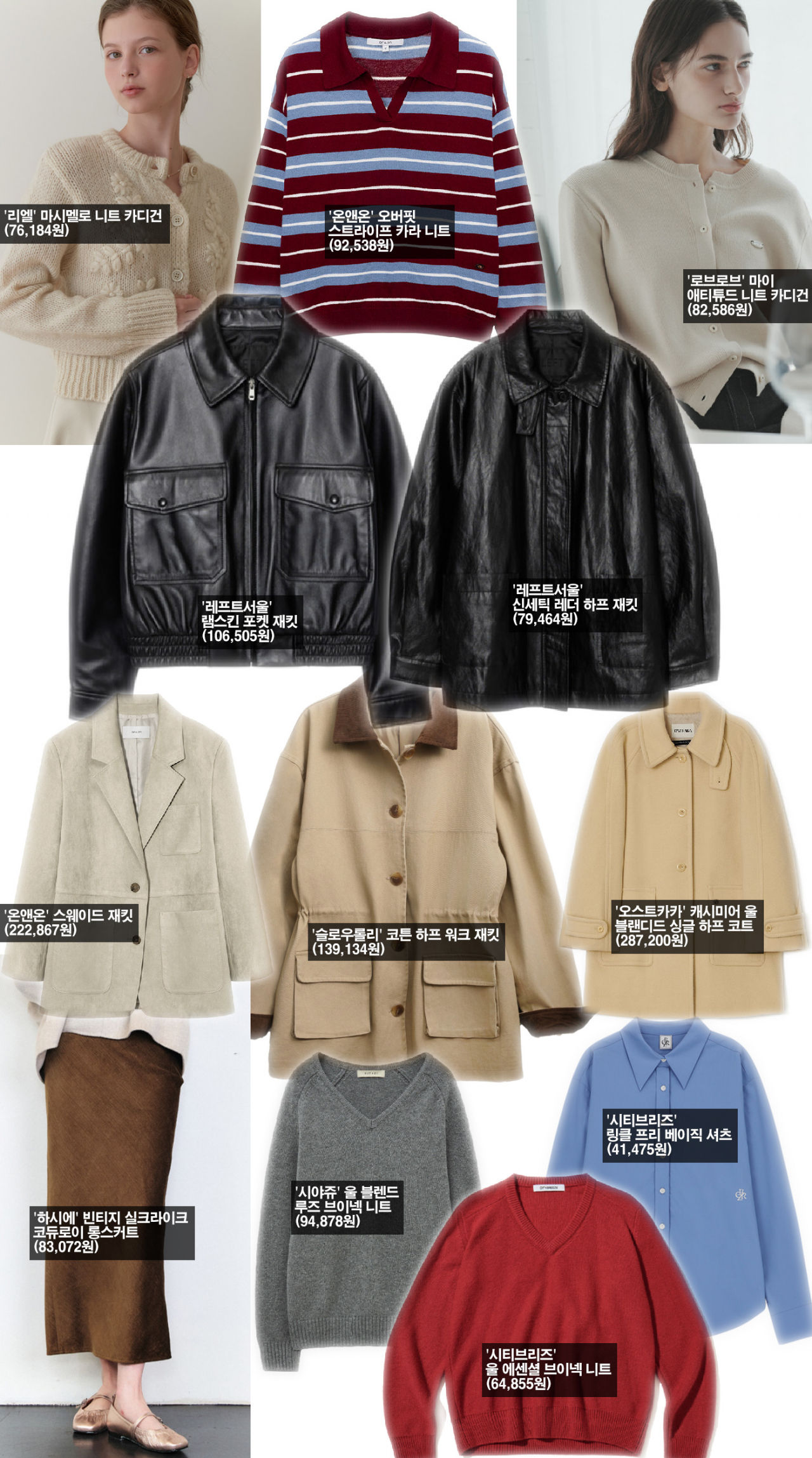 의류는 스웨이드와 함께 가죽 재킷이 인기를 끌면서 특종의 부활을 알리고 있다. 이와 함께 대세는 단연 니트. 카디건과 풀오버가 아우터보다 더 많이 팔려나가고 있다.