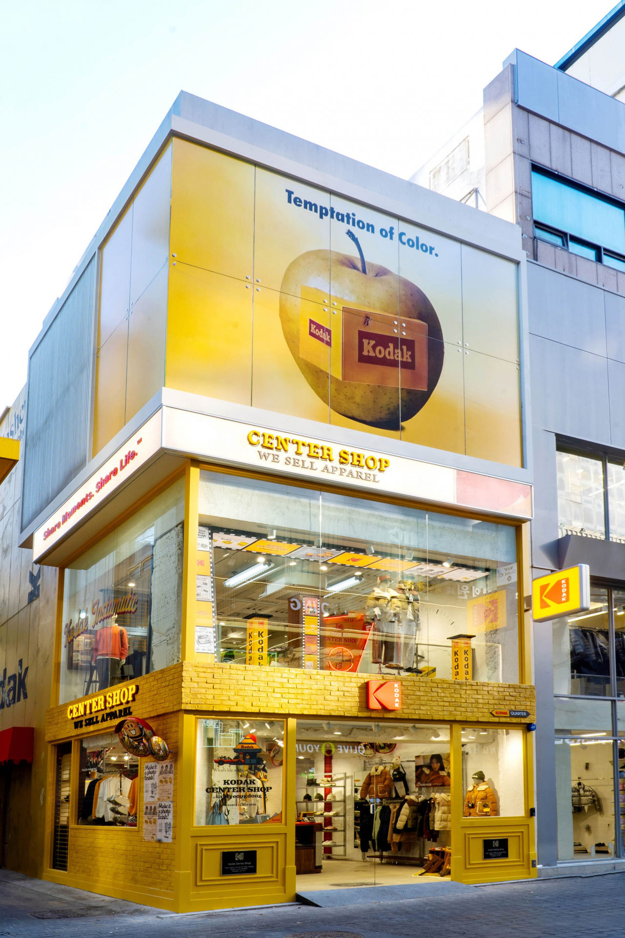 매장은 명동역에서 명동예술극장으로 이어지는 메인거리에 2층 규모로 오픈했다. 1층은 모자, 가방, 액세서리 등 소비자들이 가볍게 구매할 수 있는 제품을 중심으로, 2층은 의류를 중심으로 꾸몄다. 특히 1층에서는 ‘코닥 센터샵’을 위한 에디션 제품, 소비자들이 취향에 따라 커스터마이징 할 수 있는 셀프 프린팅 서비스 등 차별화된 콘텐츠를 제공하고 있다.