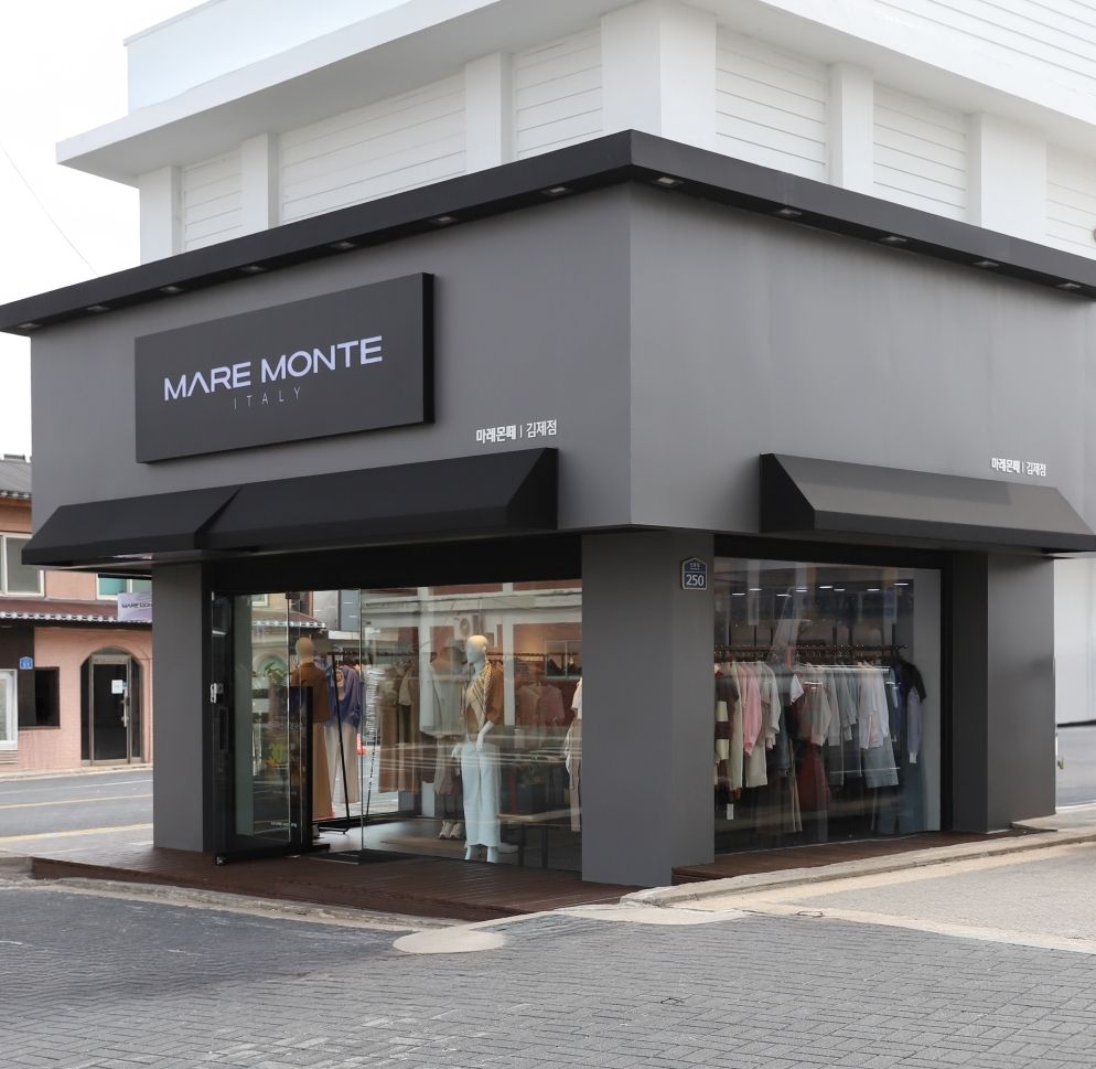 올해 문을 연 신규 매장 중 이러한 전략이 상징적으로 집약된 매장이 바로 전북 김제시 신풍길(요촌동)에 위치한 ‘마레몬떼’ 김제점이다. 김제시의 유일한 패션 상권이자, 중심가 로터리에 위치해 있는 김제점의 세련된 외양은 밤이 되면 거리를 비추는 등대처럼 빛을 낸다. ‘마레몬떼’ 맞은편으로 제시뉴욕, 미센스, 수스, 지센 등 여성복 매장이 집결해 있다.