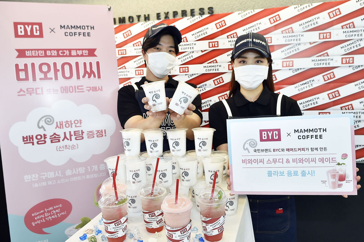 [어패럴뉴스 박해영 기자] BYC(대표 김대환)가 매머드커피(대표 김범수, 최경환)와 협업해 신메뉴 ‘비와이씨 에이드&비와이씨 스무디’를 27일 출시하고, 다양한 이벤트를 진행한다.