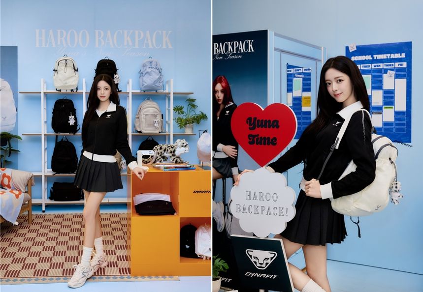 이날 유나는 트레이닝 상의와 미니스커트에 백팩을 매치해 젠지(Gen Z) 무드가 돋보이는 힙한 룩으로 모습을 드러냈다.